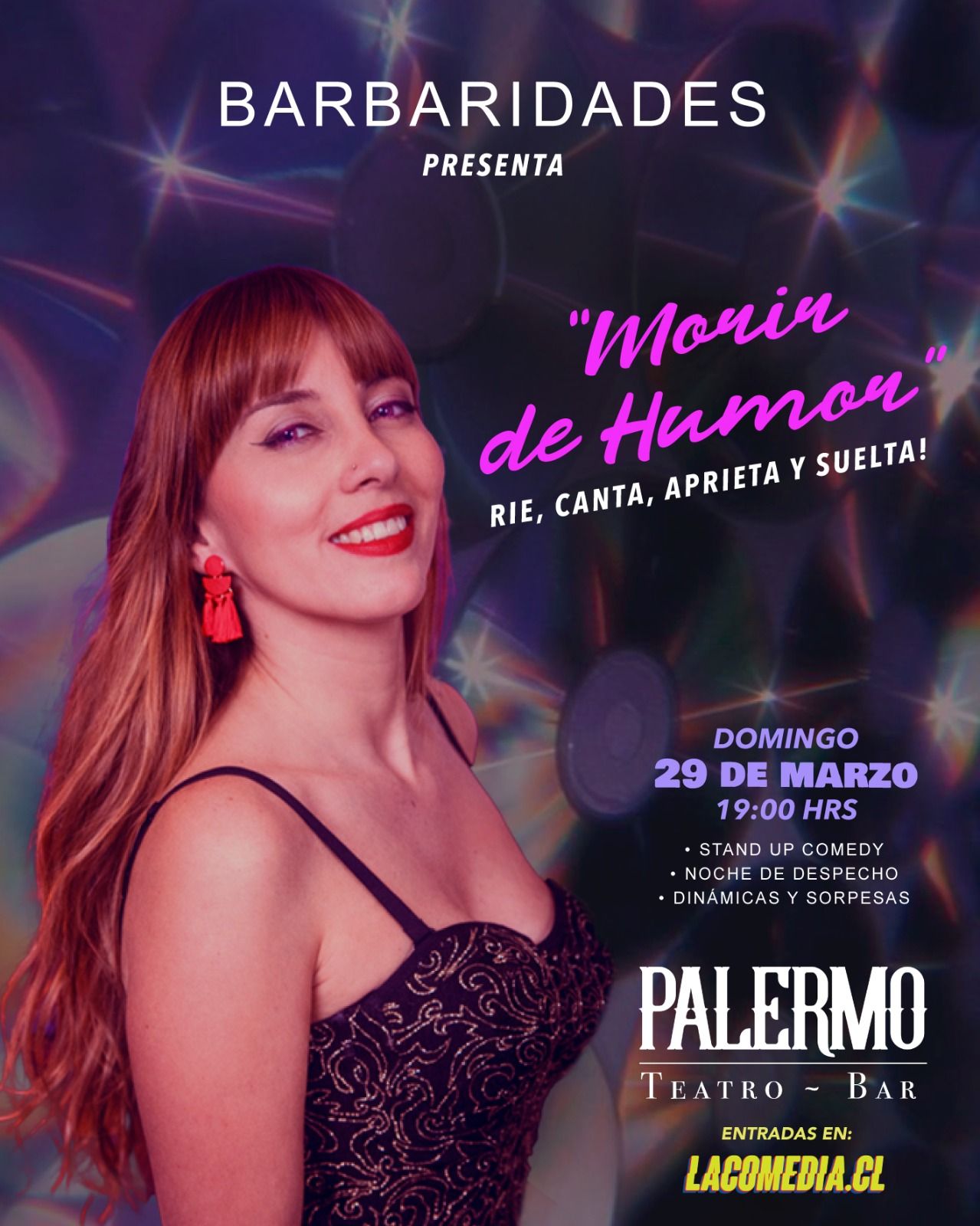 Ven a reír, cantar y desahogarte en la mejor terapia grupal de amigas!!! Porque el último domingo del mes de la mujer se vive en Palermo, con el humor y animación de Barbaridades. Te esperamos con sorpresas y dinámicas. Reserva con anticipación!!