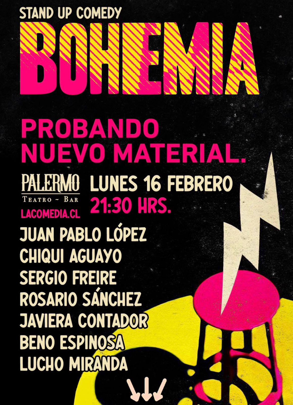 Un show único donde tus comediantes favoritos prueban nuevo material. Serás el primero en escucharlos… ¡y quizá el único!