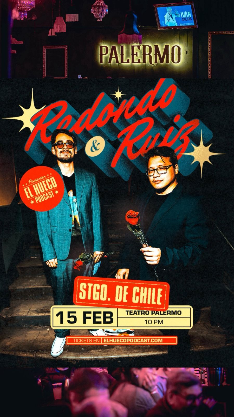 REDONDO & RUIZ El Hueco Stand Up Comedy Los comediantes venezolanos Manuel Ángel Redondo y Gabo Ruiz unen fuerzas nuevamente para tratar de salir, o caer aún más, en el hueco. El Hueco fue el nombre del podcast que ambos estrenaron durante su accidentada estadía en Chile por culpa de la pandemia de 2020 y en el que trataban de explorar temas poco convencionales y más “oscuros” para un par de comediantes; pero tras un año de convivencia (y de olores incómodos en el mismo departamento), ambos tomaron rumbos distintos de vida y pusieron una pausa al proyecto… Hasta ahora. Manu y Gaborui vuelven a juntarse y reinventan El Hueco, ya no como un podcast tradicional sino como un show de stand up comedy e improvisación en el cual ambos comediantes exploran sus más íntimos pensamientos mientras van interactuando con la audiencia para entender qué nos hace entrar en hueco. MANUEL ÁNGEL REDONDO Comediante y comunicador venezolano principalmente conocido por sus proyectos online como el webshow de sátira política Pero Tenemos Patria, el documental Viviendo al Mínimo o el muy exitoso programa de entrevistas alcoholizadas Entregrados. Hizo radio exitosamente en su país durante 10 años, hasta que fue forzado a salir del aire por los organismos de censura del gobierno venezolano. Desde ese entonces, hace comedia en Internet y por el mundo, con presentaciones agotadas por toda Europa, Latinoamérica y EEUU. En 2023 estrenó su primer especial de comedia en Youtube llamado “SHOTS”. GABO RUIZ Comediante oriundo de La Guaira, Venezuela. Conduce dos exitosos podcast “El Mundo y el País con Gabo Ruiz” y “De a Toque” junto a Verónica Gómez. Con sus shows de stand up comedy ha podido girar por toda Venezuela, Latinoamérica y Europa. En 2023 estrenó su primer unipersonal de stand up en Youtube llamado “En la casa hay”.