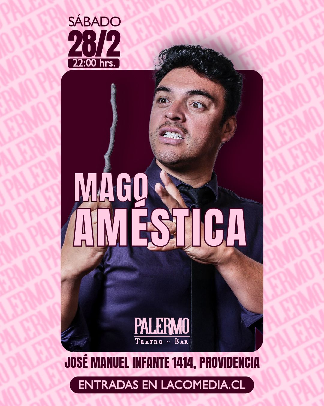 Continuando con su exitosa temporada de MAGICOMEDIA mago Améstica nos invita a vivir una noche llena magia comedia y diversión. Un show distinto hilarante y muy entretenido. No dejes pasar esta oportunidad de vivir la comedia y la magia muy de cerca. Calificación